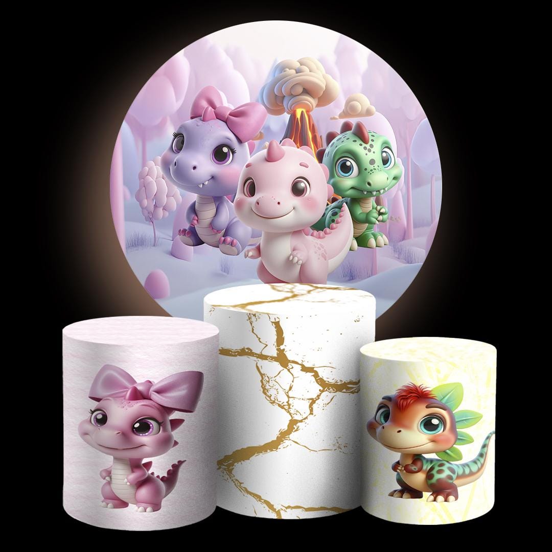 Cartoon Dinosaur Inspired Round Backdrop Cylinders Cover Round Backdrop Cover Photo Photography Background