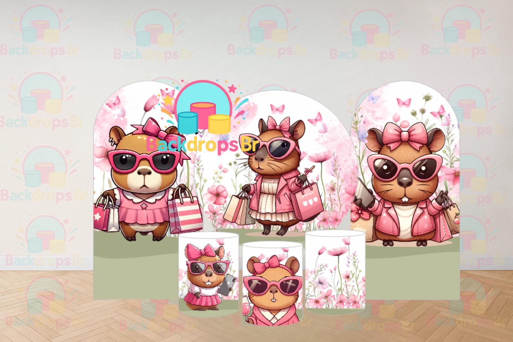 Capybara | Cartoon Arch Backdrop+ Round Backdrop + Cylinders Covers Backdrop 6 pieces| PhotographyBackdrop| Birthday Backdrop