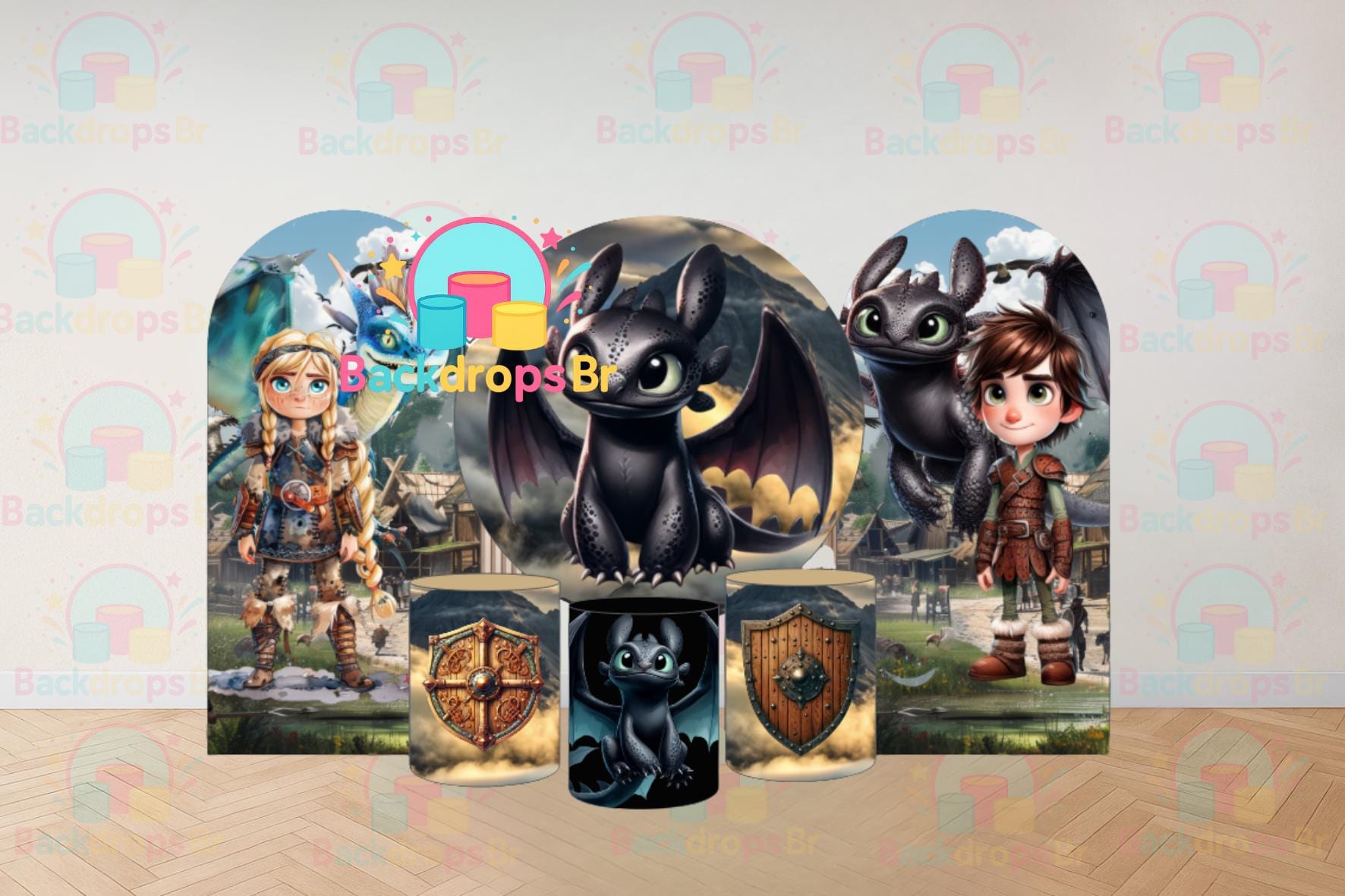 InspiredDragon | Cartoon Arch Backdrop+ Round Backdrop + Cylinders Covers Backdrop 6 pieces| PhotographyBackdrop| Birthday Backdrop