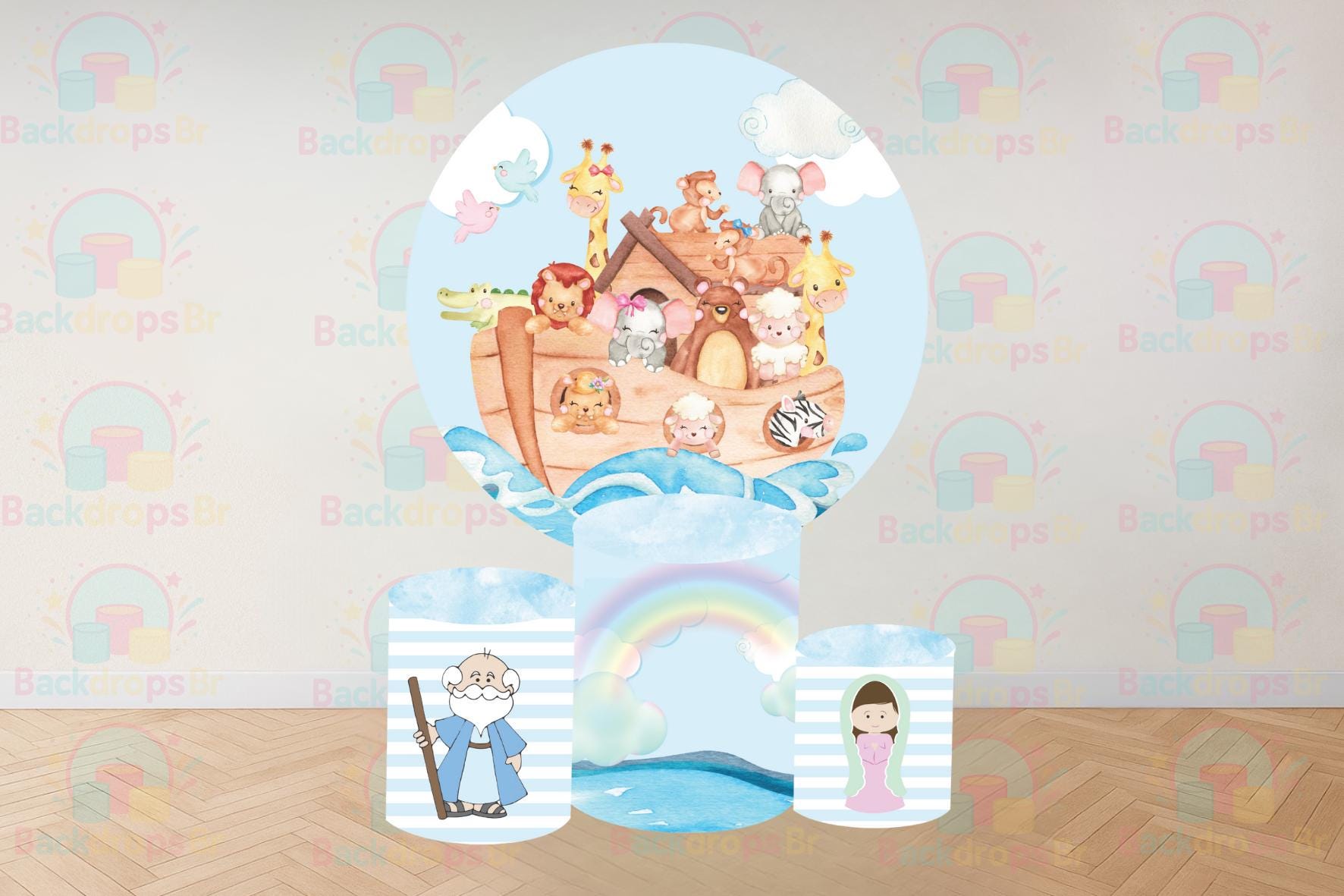 Noah’s Ark Cartoon Inspired Round Backdrop Cylinders Cover Round Backdrop Cover Photo Photography Background