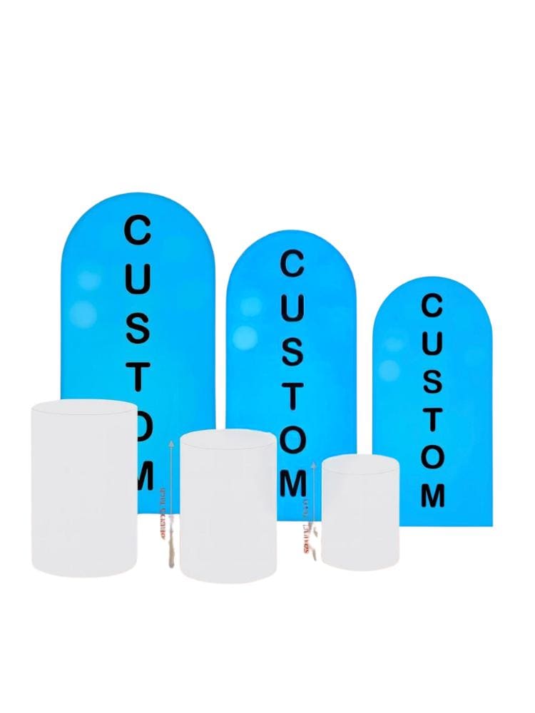 These covers (Arch and cylinders) can be customized with names, ages, logos, colors, or text to make your event truly unique.