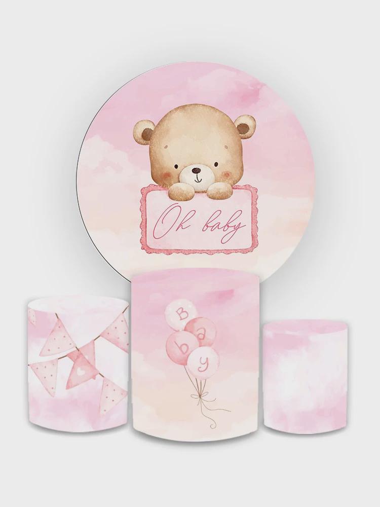 Baby Shower Backdrop | baby shower bear| Cylinders Cover Round Backdrop Cover Photo Photography Background