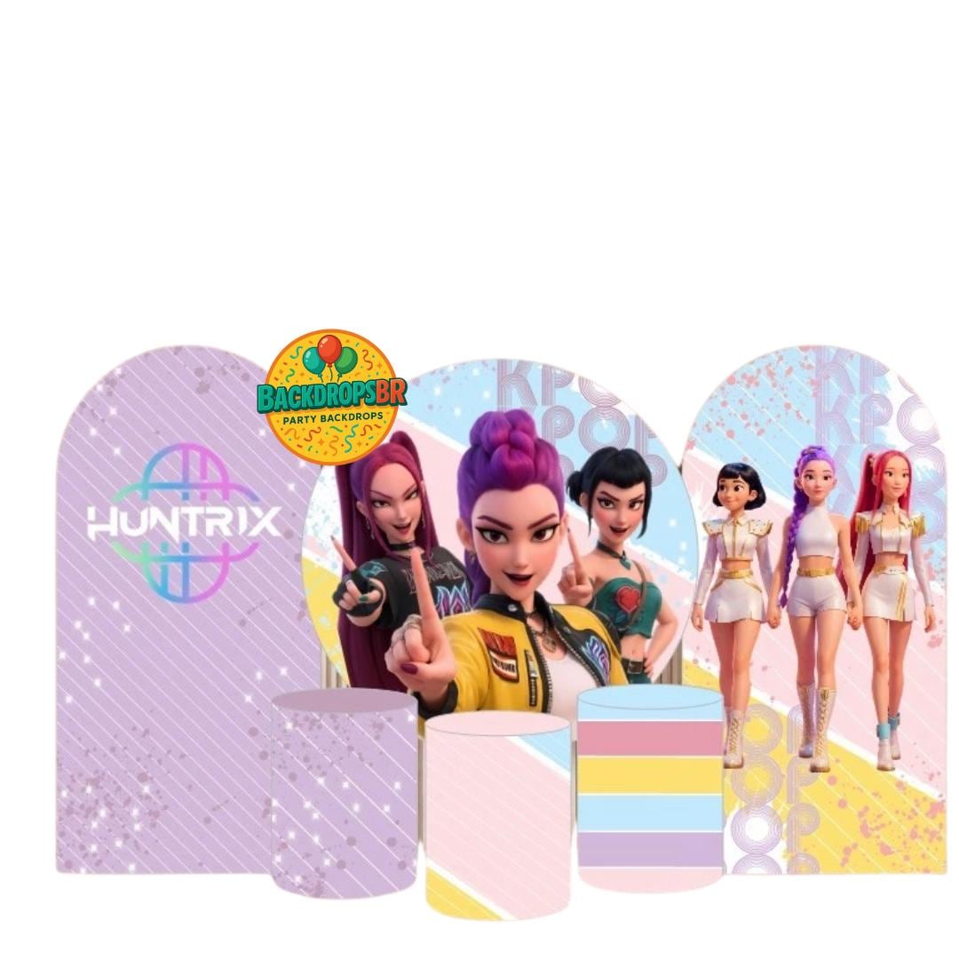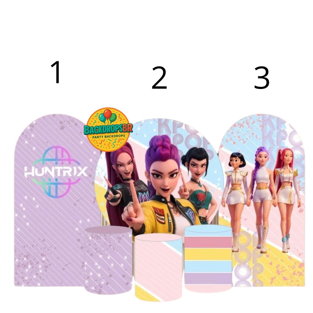 K-pop Demon Hunters |Cartoon Arch Backdrop+ Round Backdrop + Cylinders Covers Backdrop 6 pieces| PhotographyBackdrop| Birthday Backdrop