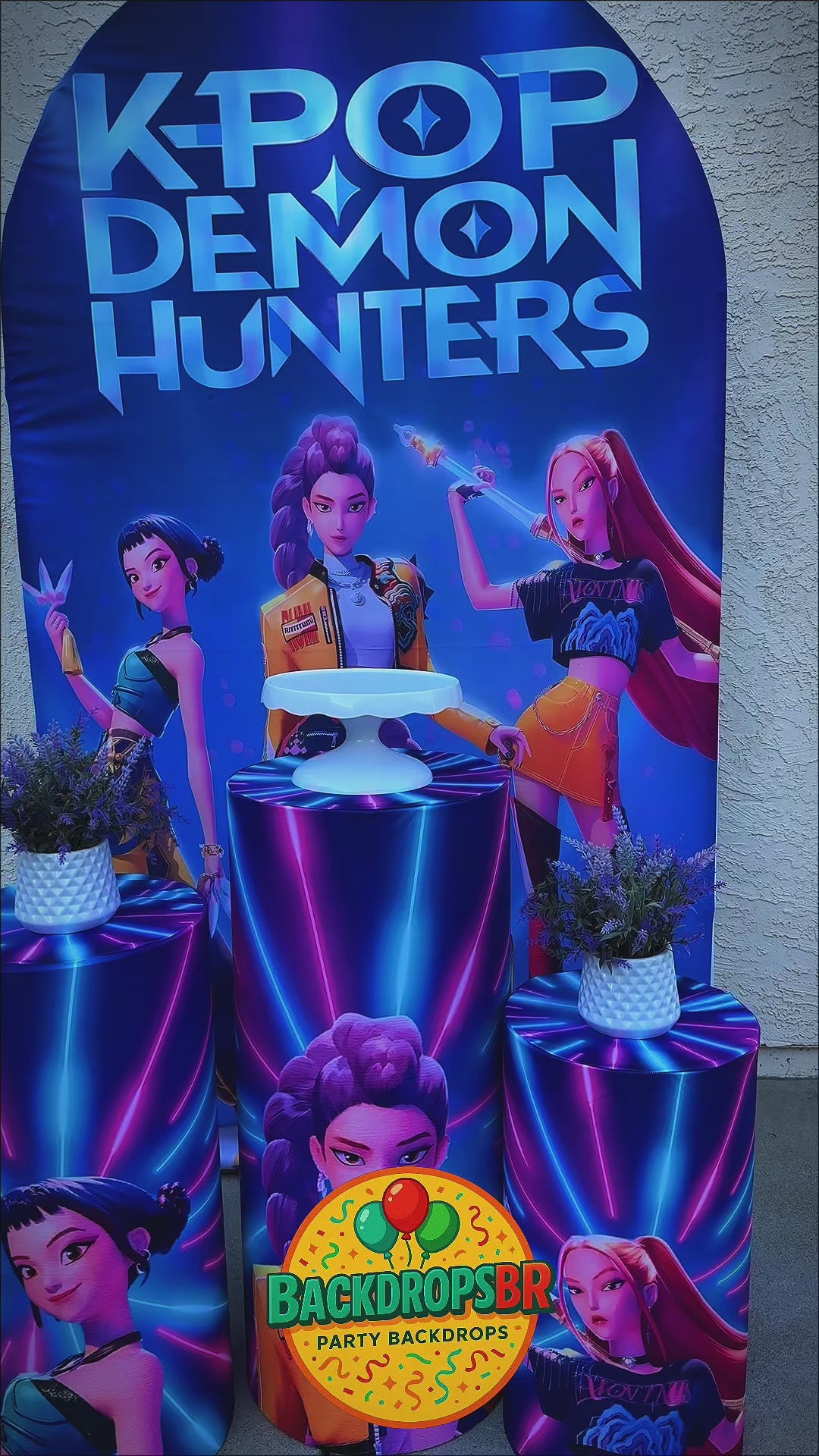 Kpop Demons Hunters Kpop Arch Backdrop Set 4 Pieces | Cylinder Covers for Birthday Party| Birthday girl| Kpop Birthday Decor